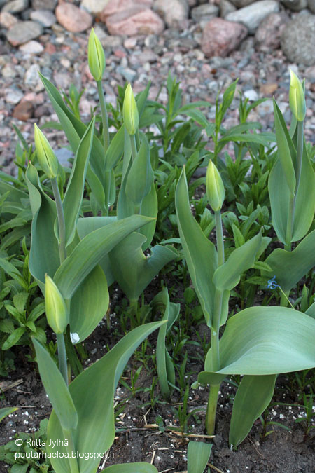 kanssa. Nekin olen hajauttanut usein eri puolille puutarhaa. Tulppaaneista